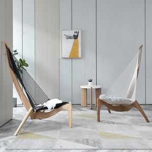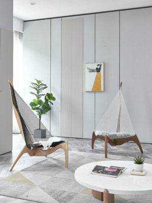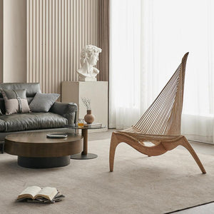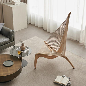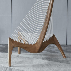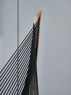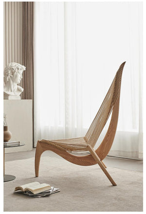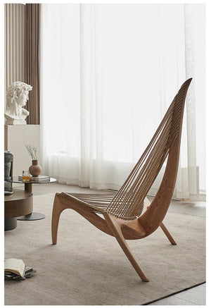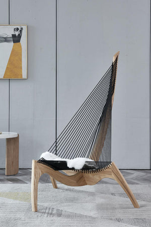 Created by the esteemed artist Jørgen Høvelskov, these harp-inspired sculptural chairs are not merely eye-catching but are also ergonomically designed to maximize comfort. The chair's sweeping lines and ergonomic form facilitate a soothing seating experience, inviting you to relax and savor its enduring elegance.