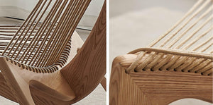 Each chair is meticulously constructed, epitomizing the quintessential mid-century design ethos. The seamless blend of rope, wood, and string results in a captivating interplay of textures, imbuing an element of organic sophistication to any space.