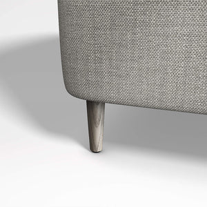 The bed rests on turned solid oak legs with a subtle grey finish, perfectly complementing the upholstery and adding a touch of modern refinement. The Aston bed combines timeless elegance with clean, contemporary lines for a fresh and sophisticated bedroom look.