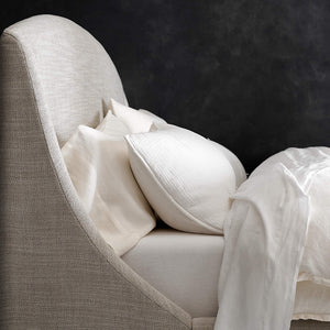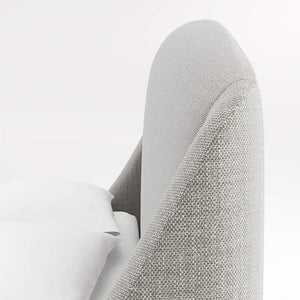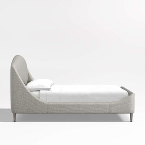 Aston reimagines the elegant curves of a French-style chaise into a sleek, modern bed for contemporary bedrooms. Fully upholstered in a linen (other fabrics available), the design flows seamlessly from the softly rounded headboard to slim, gracefully curved rails that rise to form a low-profile footboard.