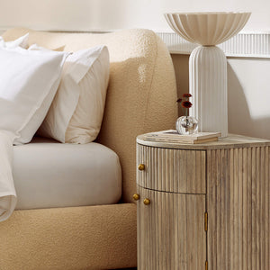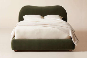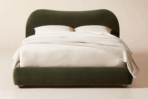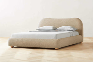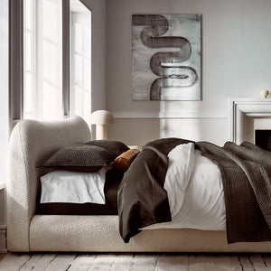 With its elegant curves and luxurious, cloud-like appeal, the Barbella bed embodies the refined craftsmanship of 1930s Italy. Upholstered in the softest boucle (with other fabric and leather options available), its frame is supported by solid wooden legs in a warm mid-tone stain. A subtle nod to classic camel-back silhouettes, this design is reinterpreted with a modern twist.