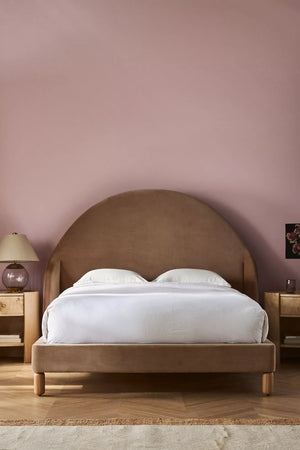Discover the perfect retreat for restful nights with the Cedric Contemporary Bed. Showcasing a softly arched headboard and a velvet-upholstered frame, it offers a modern elegance that effortlessly suits contemporary interiors.