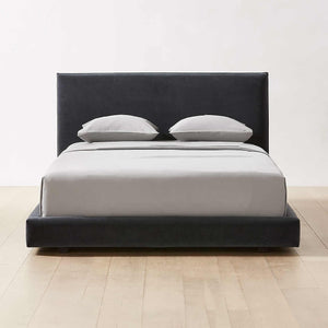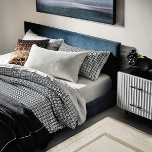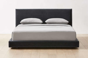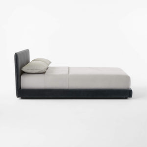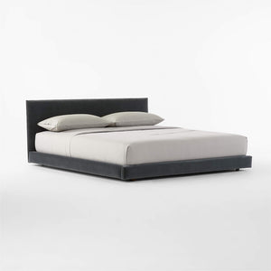 The Larosa bed combines minimalist design with a soft, chic, contemporary look. Its slim, cushioned headboard rises high, offering perfect support for leisurely reading or relaxing in bed, while the low-profile frame maintains a modern aesthetic. Impeccably tailored on all sides, this versatile piece is designed to look stunning whether placed against a wall or positioned to float in the centre of the room. A statement in understated elegance.