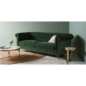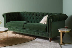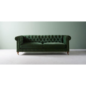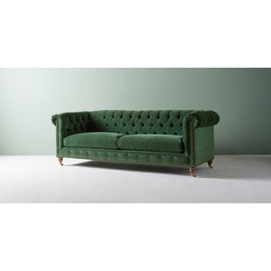 Drawing inspiration from its 18th-century predecessor "The Chesterfield", this deep buttoned sofa stays true to its roots with elegant stud nail trim and gracefully scrolled arms. Its generously proportioned design and luxuriously coloured upholstery defy the constraints of time, making it an impeccable choice for modern living spaces.