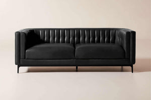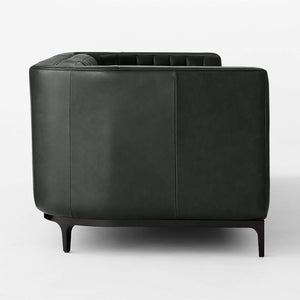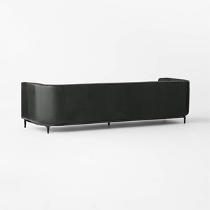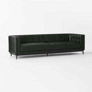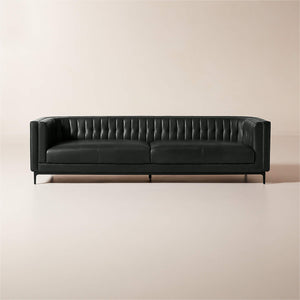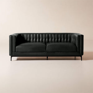 Gentle curves and a channel-tufted back shape the refined design of this elegant sofa. Classic elements like blind tufting and welting enhance the contemporary silhouette, showcasing exceptional craftsmanship in every detail. Upholstered in leather, this sofa is both luxurious and practical, designed to withstand the demands of everyday living. Its frame, meticulously hand-assembled from solid hardwood is paired with thick, plush cushions that offer deep comfort and excellent support.