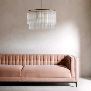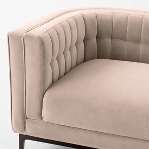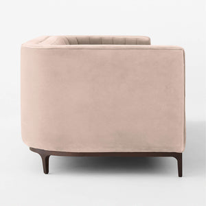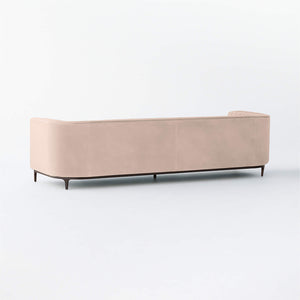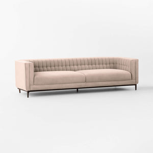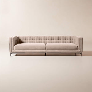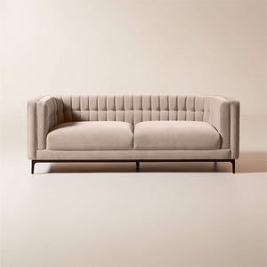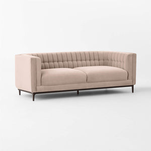 Gentle curves and a channel-tufted back shape the refined design of this elegant sofa. Classic elements like blind tufting and welting enhance the contemporary silhouette, showcasing exceptional craftsmanship in every detail. Upholstered in a performance fabrics, this sofa is both luxurious and practical, designed to withstand the demands of everyday living. Its frame, meticulously hand-assembled from solid hardwood is paired with thick, plush cushions that offer deep comfort and excellent support.