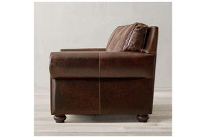 100% aniline leather. Hand-buffed for a lovely vintage look. It's easy to care for and feels as good as it looks. This leather looks even better and softer with age.