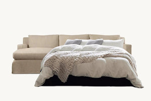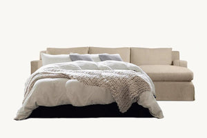 Introducing the Bosa L shape sofa bed and chaise, our contemporary take on the classic loose cover linen corner sofa with chaise. Boasting a sleek design and exceptional craftsmanship, the Bosa effortlessly blends a relaxed coastal vibe with a touch of refined luxury. Its enduring style and premium materials make it the perfect enhancement for any living space.