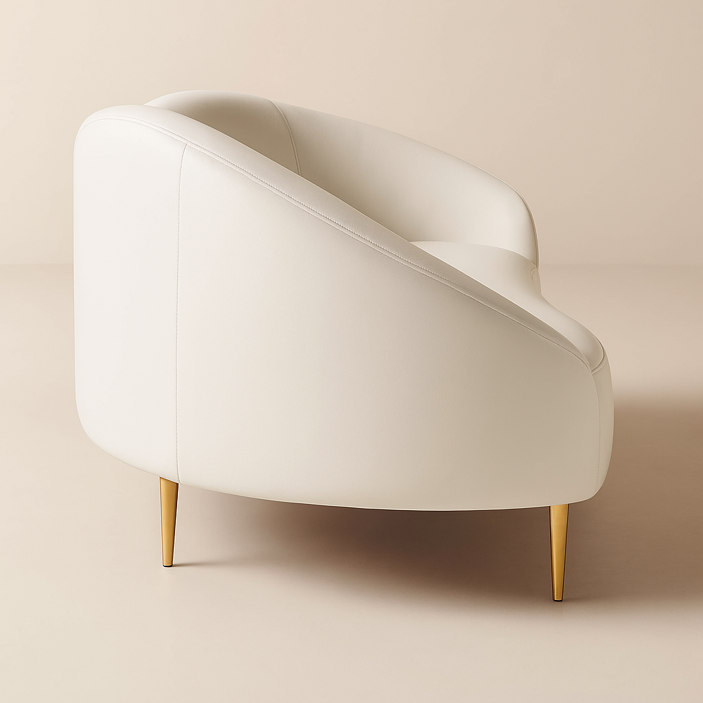 Lorenzo is a timeless classic inspired by Italian mid-century design, its fluid lines exude understated elegance. The sophisticated form offers uncompromising comfort, enveloped in luxurious cotton velvet. Resting on champagne-finish legs, its soft crescent shape brings a light and inviting lounge aesthetic to any space.