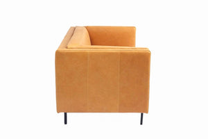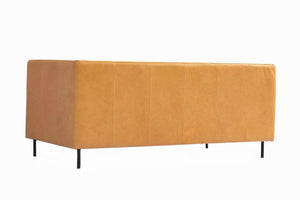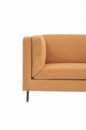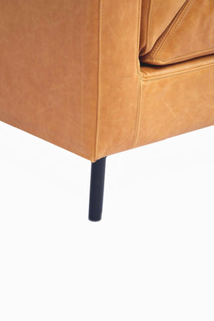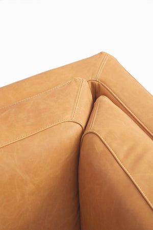 Introducing the Mette Collection: a blend of sophistication and relaxation, it presents a warm and inviting design through its gentle, sleek contours and charming iron embellishments. Mette's comfortable bench-style seating, luxurious side bolsters, and meticulously crafted leather upholstery bring a seamless touch of modern mid century elegance to every living area.