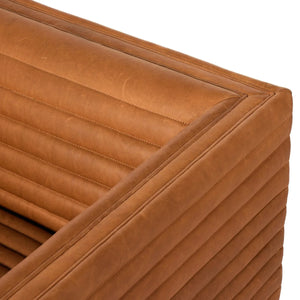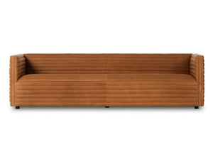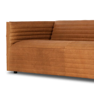 The Parrillo sofa combines striking, slim arms with a distinct tuxedo-style design, offering deep, spacious seating for ultimate comfort. Built on a solid wood frame, it’s upholstered in channel-tufted leather that develops a rich, worn patina over time, adding character with every use. Delivered fully assembled, this sofa is designed to last, providing years of stylish lounging in any modern space.