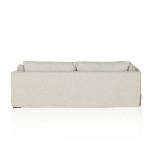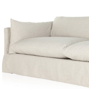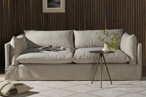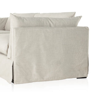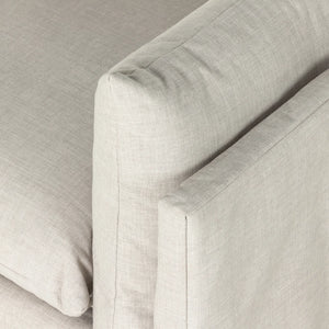 The Burgess loose cover sofa is designed for contemporary living. Featuring very slim arms and generously sized, pillow-style cushions, it is upholstered in durable, comfortable fabric perfect for relaxing. The performance fabrics are expertly crafted, offering long-lasting comfort and exceptional durability.