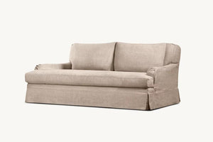 With its graceful scalloped arms, the Griffin Sofa captures timeless, vintage charm while offering luxurious comfort. The high-quality linen loose cover enhances its elegance, providing both a soft, breathable feel and easy maintenance. Its high back ensures excellent support for your head and neck, making it a stylish and comfortable addition to any living space.