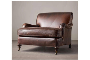 Paying tribute to the luxury and comfort of Edwardian-era furnishings, our Harrow Leather Love Seat is marked by its handsome double arched back, low rolled arms, and turned front legs on brass casters. The deep profile and loose seat cushions give it a relaxed feel, while still exuding an air of timeless elegance.