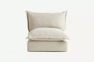 This fully customisable modular range provides an easy entry into modern design. You can effortlessly create a sofa configuration or seating layout that suits your space by selecting the desired components, then choose from our array of upholstery options to design a piece perfectly suited to your needs. Pictured in Spa Linen Stone SJ301-2.