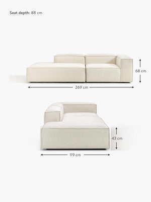 Seat dimensions chaise module: W 150 cm, H 43 cm, D 88 cm