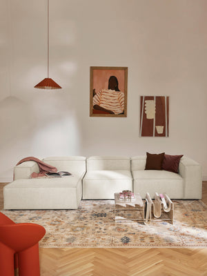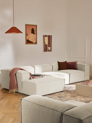Our modular sofa series Russo, available in various sizes and components, creates the perfect sanctuary for cosy moments at home. Its signature design—featuring low arm and back supports and a plush, deep seating area—is ideal for lounging and relaxation. The solid pine wood frame is built for longevity, while integrated foam cushions with pocket springs maintain its distinctive form. An easy click system allows for effortless expansion.