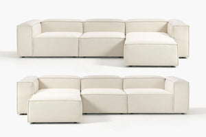 Russo Modern Minimalist 4-Piece Modular Deep Chaise Sofa - Left and Right Facing