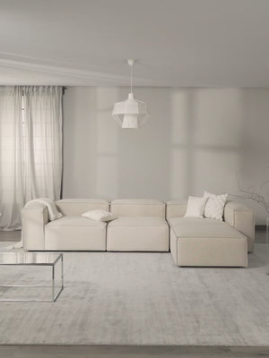Our modular sofa series Russo, available in various sizes and components, creates the perfect sanctuary for cosy moments at home. Its signature design—featuring low arm and back supports and a plush, deep seating area—is ideal for lounging and relaxation. The solid pine wood frame is built for longevity, while integrated foam cushions with pocket springs maintain its distinctive form. An easy click system allows for effortless expansion.