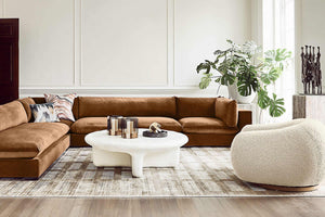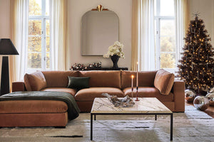 The Venturi sectional corner, upholstered in luxurious performance velvet, combines modern elegance with inviting comfort. Its expansive design sits low to the ground, showcasing a plush silhouette with pillow-like detached cushions and wide armrests that double as casual seating spots for gatherings. Customise the layout with modular pieces to perfectly suit your space.