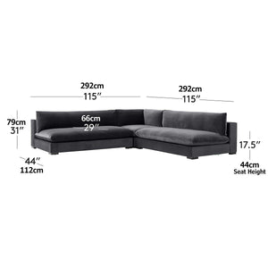 Venturi Armless Deep Seat Corner 3-Piece Modular Sofa 292cm x 292cm
