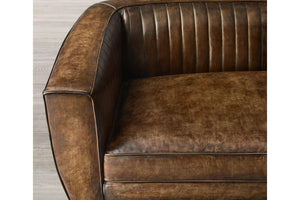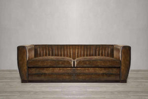 Experience the perfect blend of modernism and luxurious comfort with our Deco vintage leather sofa bed. Drawing inspiration from the elegant French design of the 19th century, this collection showcases a shelter-style silhouette enhanced with vertical lines and gracefully curved sides. Made to order to your specifications, this sofa bed effortlessly transforms into a comfortable sleeping space, adding versatility to your living area.