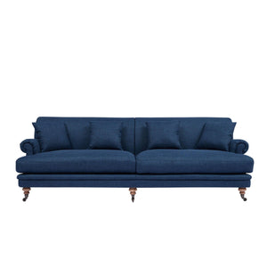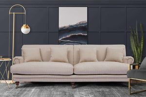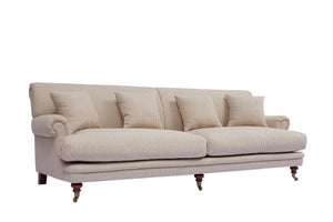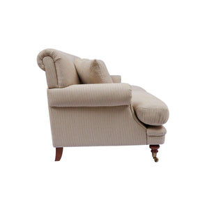 Introducing Harriet, an elegant and understated sofa that effortlessly elevates both modern and traditional homes. Combining contemporary comfort with classic design, Harriet features hand-finished scroll arms and two plump seat cushions filled with feathers & fibre (other options available). Its striking details include turned wooden legs with traditional castors.