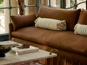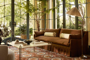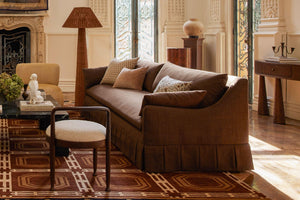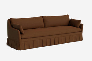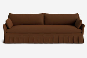 The Sophie Sofa blends elegance with casual charm, highlighted by its chic pleated skirting. Upholstered in luxurious 100% linen (select your fabric from the menu), it features graceful sloped arms and clean, modern lines, making it a perfect addition to any living room. The cushions, filled with your choice of feather or fiber, provide superior comfort, while the slim arms maximize seating space for a cosy, welcoming feel. Available in linen, cotton, and velvet upholstery options.
