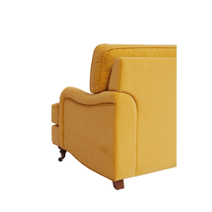 With its elegant scalloped arms, turned feet, brass castors, and exquisite piping, the Abbie Armchair exudes vintage allure while offering luxurious comfort. Elevate your living space with this remarkable piece that perfectly balances classic details and contemporary design.