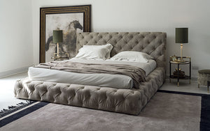 Available in both leather and fabric, the Daytona bed exudes a regal presence, making it the true centrepiece of any bedroom. With its noble aesthetic and solid proportions, it brings unmatched style and elegance to the night space.