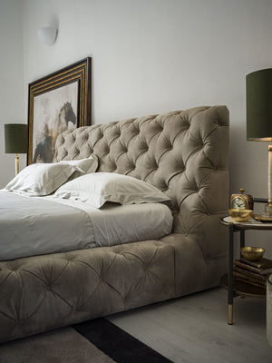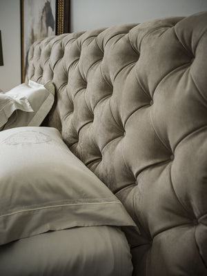 The Daytona bed showcases exquisite craftsmanship with its Deep Button hand-tufted capitonné design, a timeless technique that blends antique charm with contemporary elegance. The bed’s modern, square, and linear silhouette redefines classic luxury, while the soft wave effect of the capitonné detailing adds a touch of sophistication and refinement.
