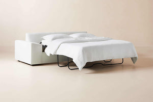 The Santoro Sofa Bed delivers elevated comfort in performance fabrics. Its deep, lounge-worthy profile is accentuated by angled arms, perfectly complemented by plush, pillow-like cushions—an ideal spot for a spontaneous nap. Equipped with pull out bed, this adaptable sofa seamlessly converts into a cosy bed, providing a restful experience for overnight guests.